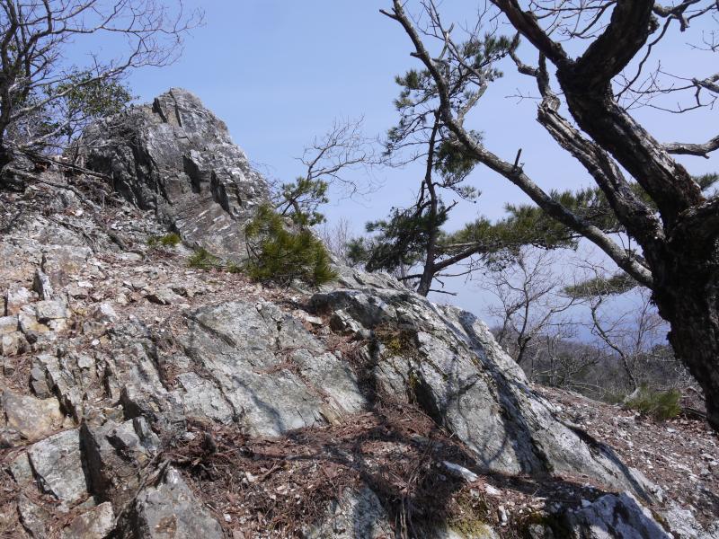 ・鳥居堂跡、大岳寺跡を経て三嶽頂上に。頂上には方位盤と無線中継所があります。頂上から西へ下り、また登りそして下り象徴的なピナクルを見て写真に収め三嶽に戻ります。