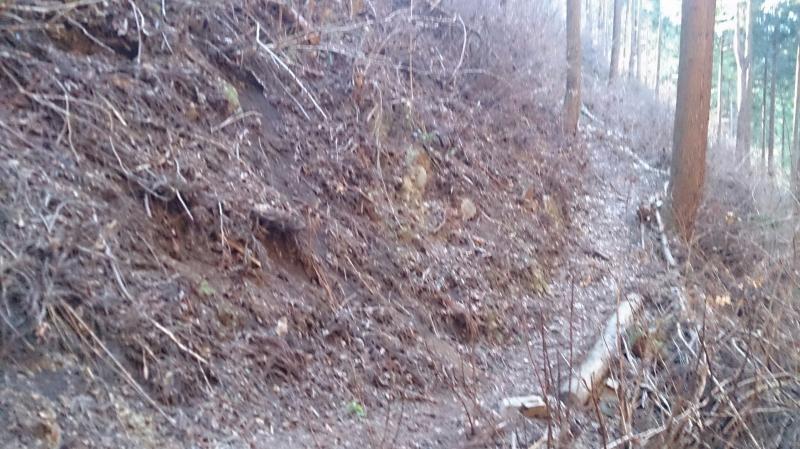 市道山分岐から吊り尾根を数分南下すると、右下に林道が見えるがそこは間違い。進むと北西に行きます。以前私は残念な思いをしました。