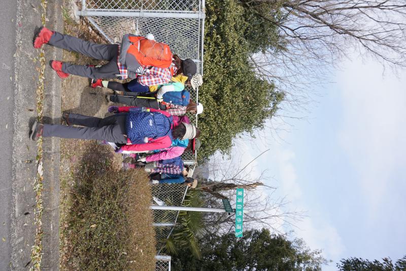 ここにある三角点は、先ほど部長うんちくに出てきた「インテリジェント」基準点(三角点にICタグが埋め込まれている)というもので、皆さんワーキャーと盛り上がってくれ、ひとしきり写真を撮って下さいました。