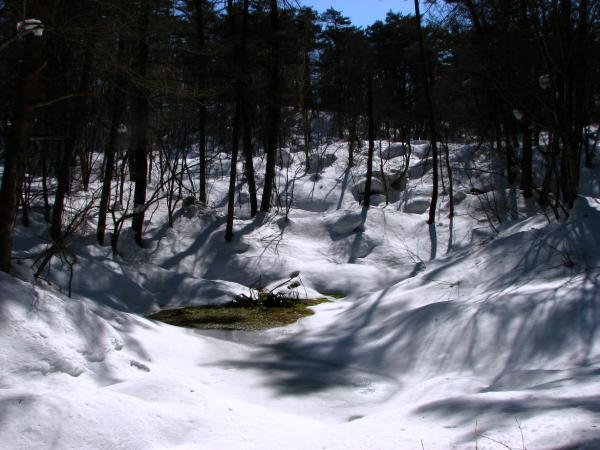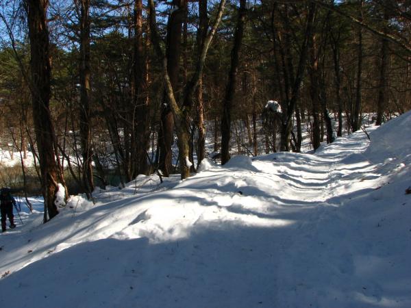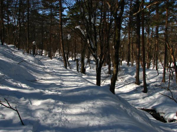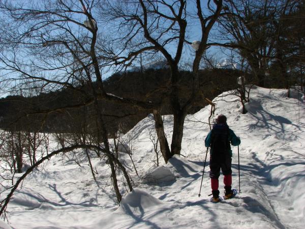 - 数日降雪がなかった事と好天が続いて人が多く入ったことでトレースを見逃すことはありませんでした。雪はかなりしまった状態だったので、夏道通りなら長靴でも歩けるくらいでした。雪が積もっているときの醍醐味、自由なコース取りで楽しむならやっぱりスノーシューが一番でしょう。