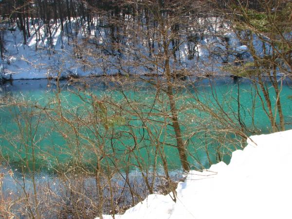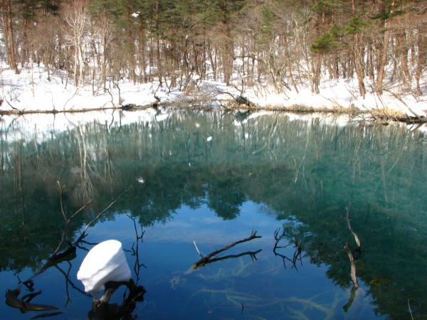 神秘の湖と紹介される裏磐梯五色沼は、沼ごとに、また時間によっても水の色が違って見えます。夏はコースと沼の間に植物があって見通しが悪いので、雪が降り積もったこの時期は沼を楽しむ最高の時期かもしれません。