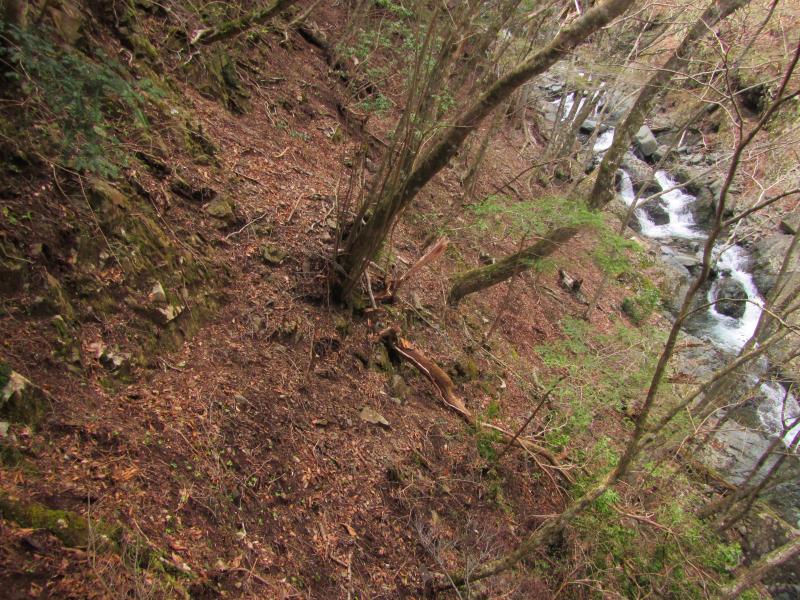 意外に高い所まで登る感じで、どうやって沢に降りるか、ちょっと迷うところ。