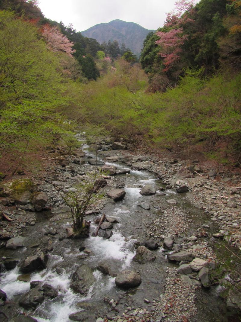 山肌に淡い桜色を望むことができ、薄緑色の風景のなかに見事なアクセントを刻んでいました。