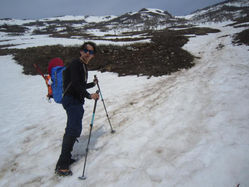 山頂直下はまだ雪も多く、さらさらの雪でした。