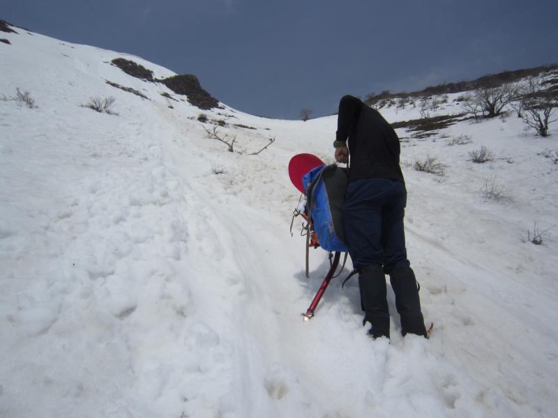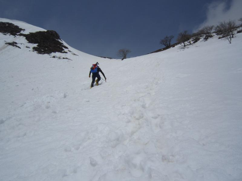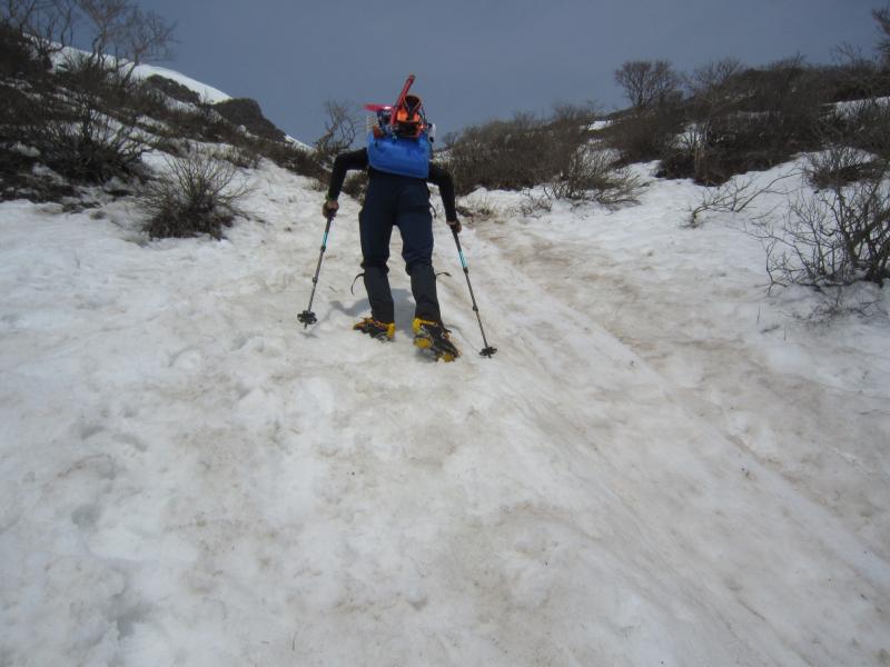 「赤岳より怖かった」杤尾さんのコメントどおり、緩い雪の下りは緊張しました。