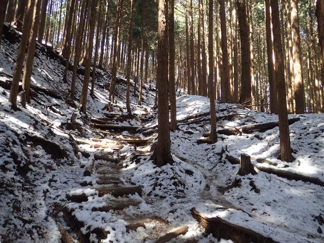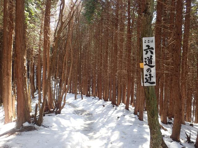 六道ノ辻から山頂までは本格的に雪が積もっていて、アイゼンなしでは歩行が困難なくらいでした。