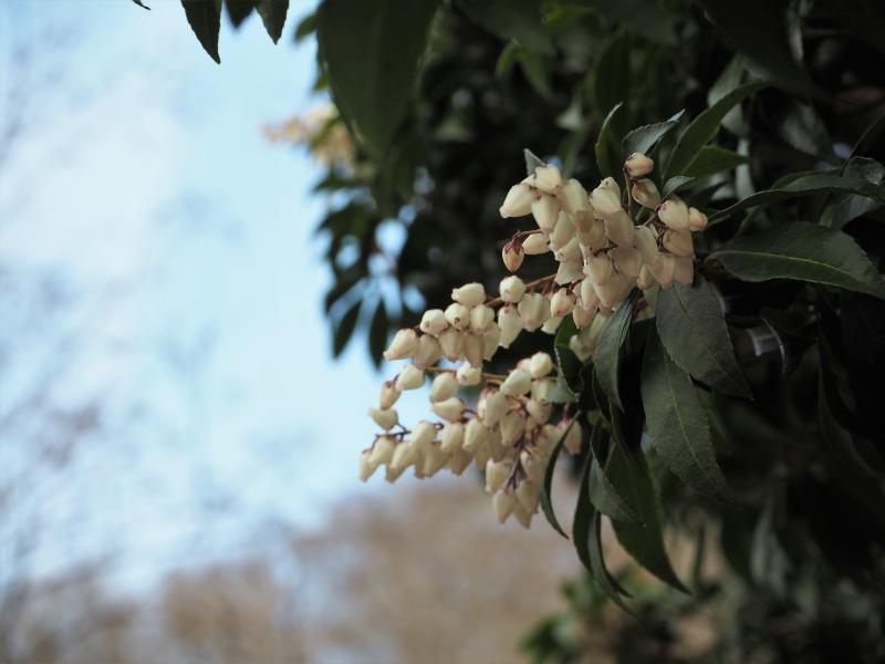 日当たりの良いところでは、県天然記念物のアセビ(馬酔木)が所々で鈴なりの花を咲かせていました。