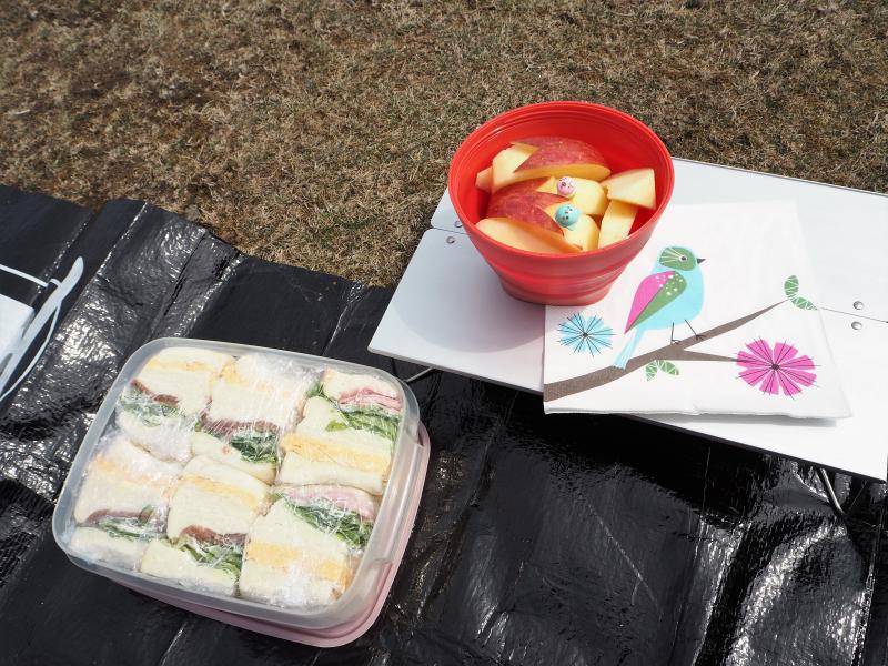 ピクニック気分で、サンドイッチとリンゴを食べゆっくり過ごしました