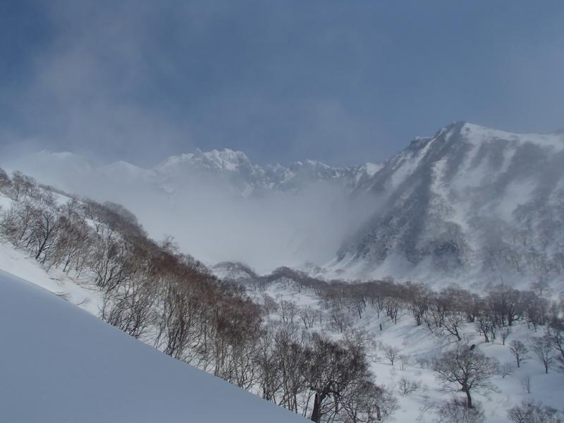 結局北稜上は烈風が吹き荒れ歩くことができず、北稜の東の沢を下りなんとか樹林帯まで逃げてテントを張りました。湿った雪で全身びしょ濡れとなり、疲労困憊。とにかく命の危険がない安全圏までおりれたことに心底ホッとしました。
