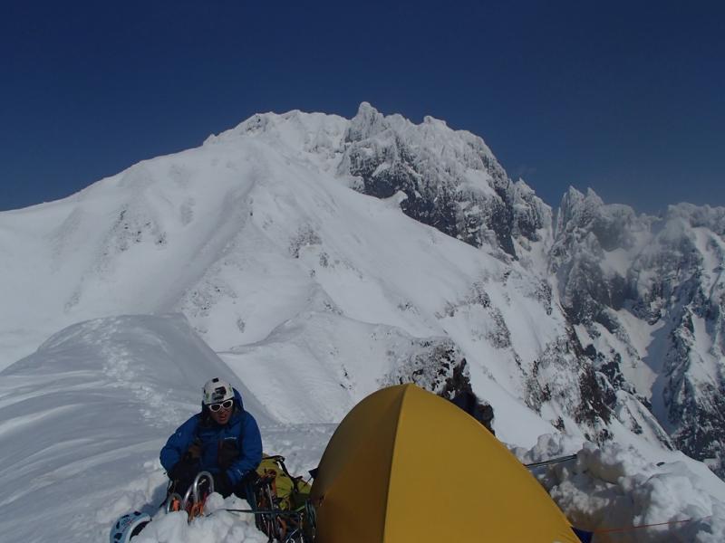 目の前に翌日登るダイレクトリッジと頂上が目の前に迫るテン場と最高のスタートとなりました。