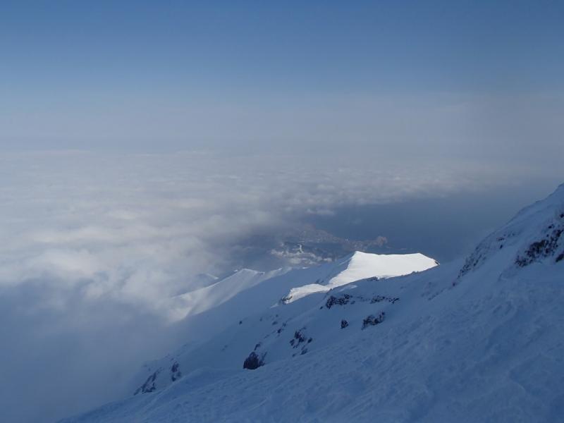 今回、利尻のバリエーションルートとしてはさほど難しくないと言われるルートであったこと、4月に入り厳冬期程の厳しい気象条件はないこと、また冬の利尻はパートナーも含めて数回経験している事から多少甘い考えが自分の中で無意識にあったのかもしれません。実際にはダイレクトリッジの登攀はもちろん北稜の下山は本当に辛く厳しいもので一歩判断を間違えば取り返しのつかない状況となるものでした。しかし、利尻の魅力はその厳しさにあります。これからも利尻をひとつの目標に自分を常に成長させていきたいと思います。また、一歩成長して行きたいと思います。
