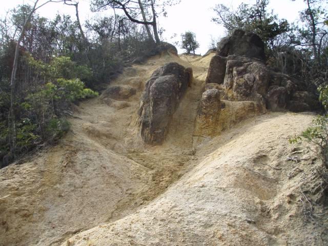 - 花崗岩の上に砂が乗っていて滑りやすい所多数あり。