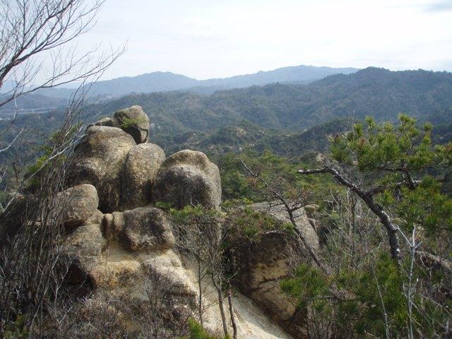 ダム上流の砂地状の河原を歩いていくと、左手に堂山への標識を発見。しばらく薄暗い山道を歩くと、展望のきく尾根道になります。ここから山頂までは岩場が多く結構楽しく、彼方まで見える景色は最高です。