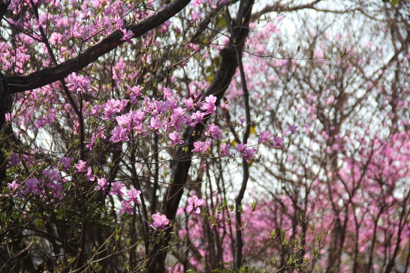 ミツバツツジは、今週は見ごろです。荒地山の登山道が一番多く、上のほうはまだまだつぼみもあり、是非つつじのトンネルを楽しんでみてくださいね。
