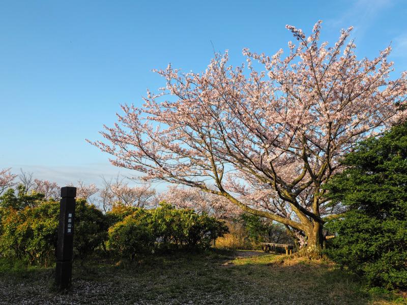 万葉の森駐車場から舗装路を歩くと30分ほどで雌岳山頂に到着。