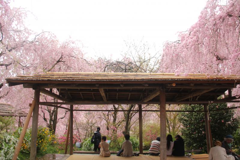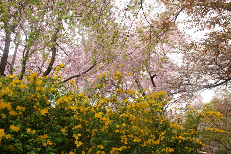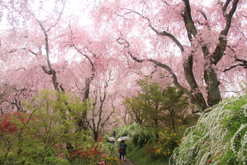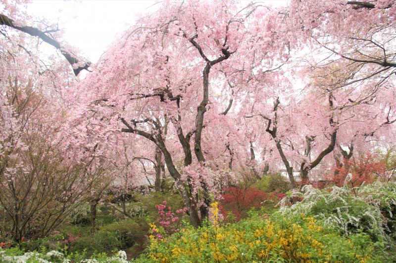 御室桜、枝垂桜、アセビ、ツツジ、シャクナゲ、しだれ梅、ほかにも種類は一杯で書ききれません。休憩場所も多く、人は雨ですが、多かったですが、ゆっくり楽しめました。