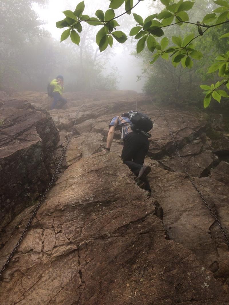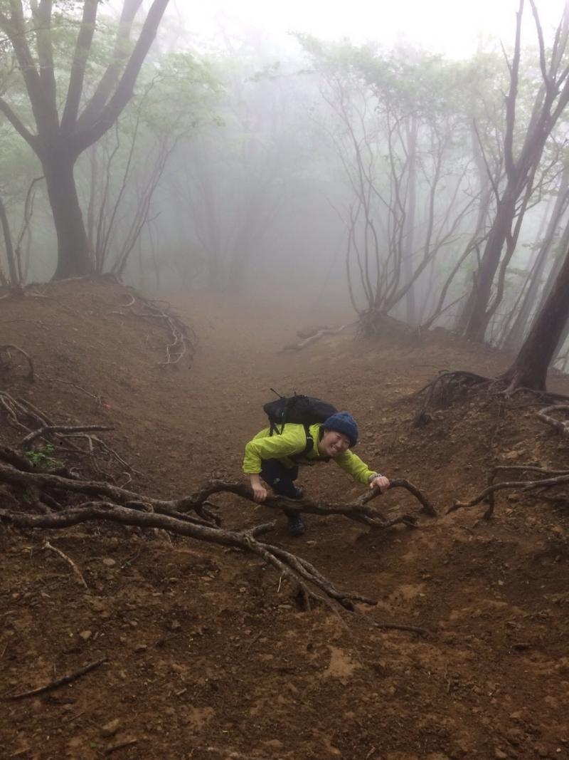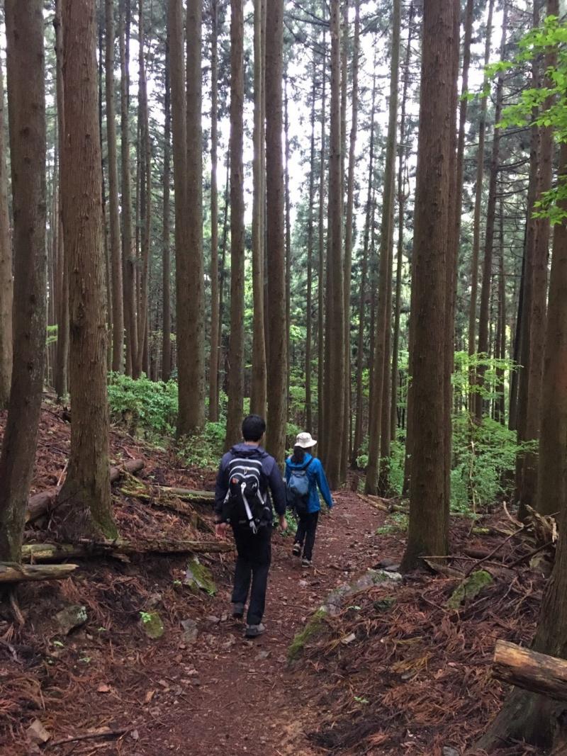早朝は雨が降っていましたが、登山道にはぬかるみがなく比較的歩きやすかったです。男坂はツルツルしていて緊張感がありました。木段、階段の荒廃が目立ち、急な斜面は粘土質で滑りやすいので気をつけてください。