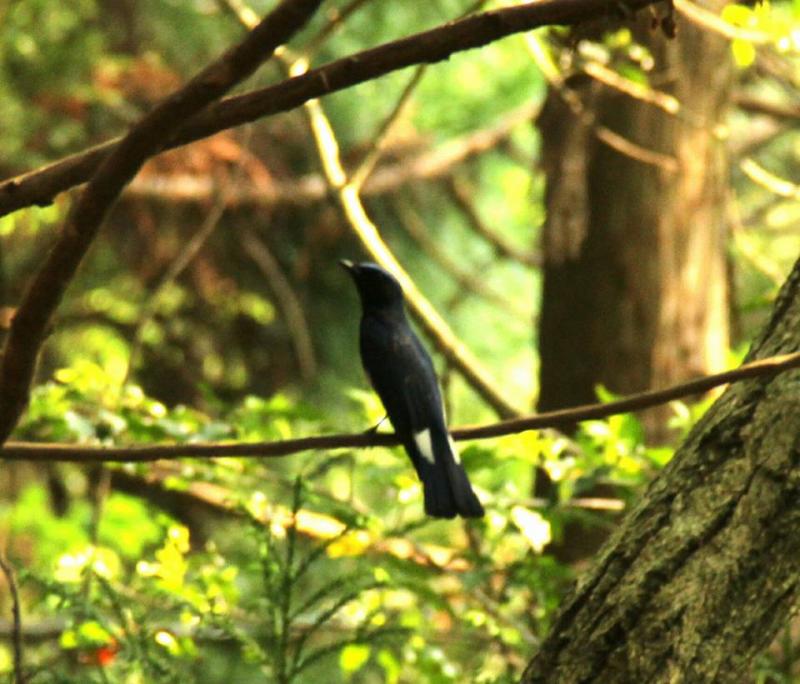 後ろ姿が黒く、レンズで追っかけると、青い鳥。