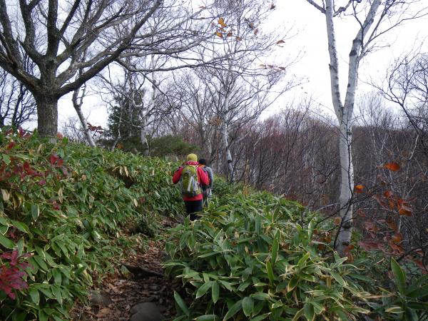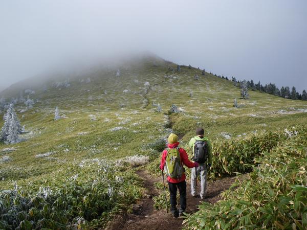 根子岳への道は、相変わらずの寒さとガスの中で景色は楽しめませんでした。
