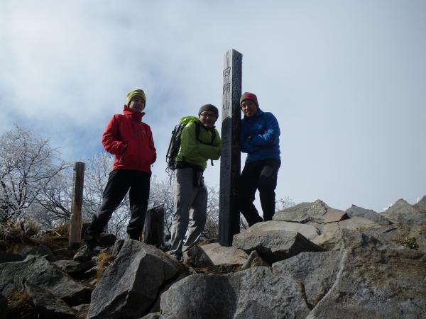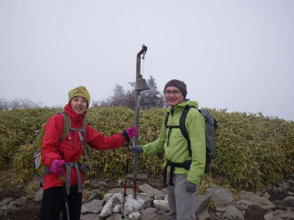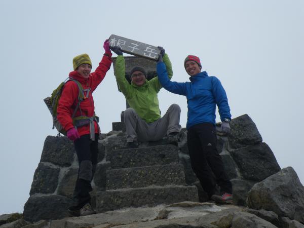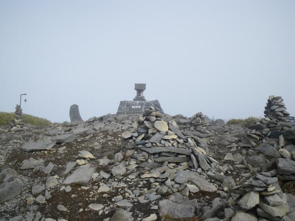 常にガスに囲まれ、風に吹かれて寒さにやられてましたが、山頂は風がさえぎられて暖かかったです。
