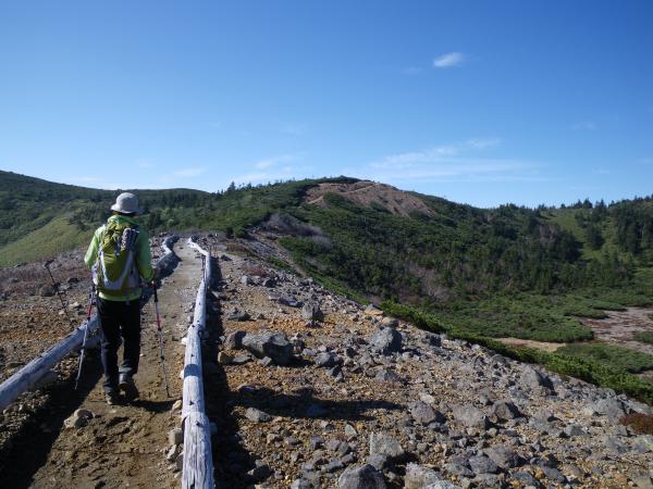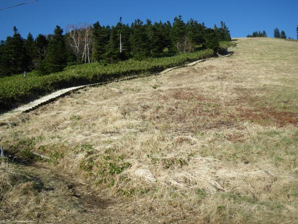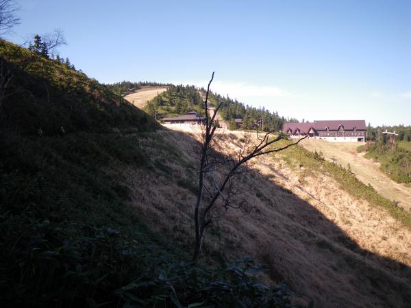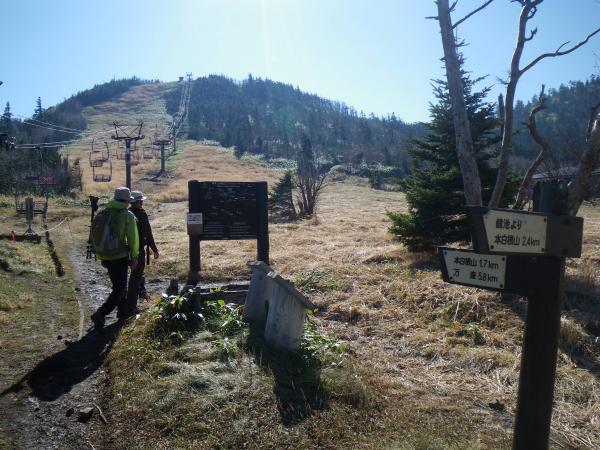 本白根ゲレンデ登山口へは、白根駐車場とロープウェイ山頂駅を結ぶシャトルバスの道を歩くと道は平坦なので疲労は少なくてすみます。