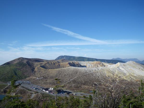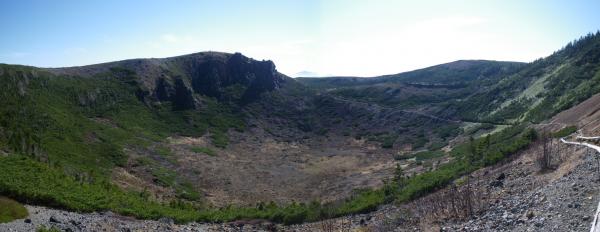 登山口からは、木道や階段などを一時間ないくらい歩けば中央火口に着きます。