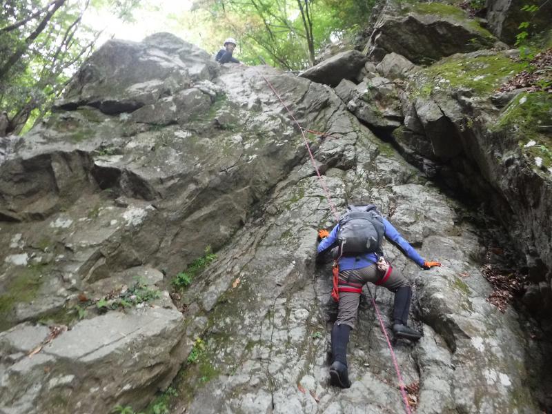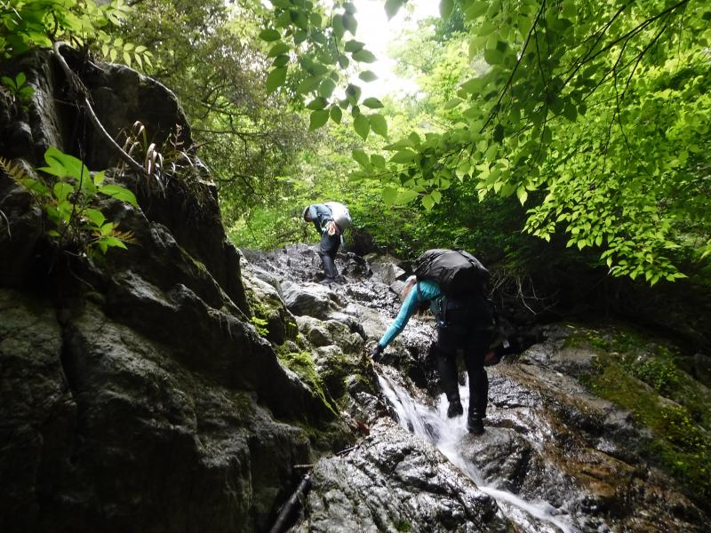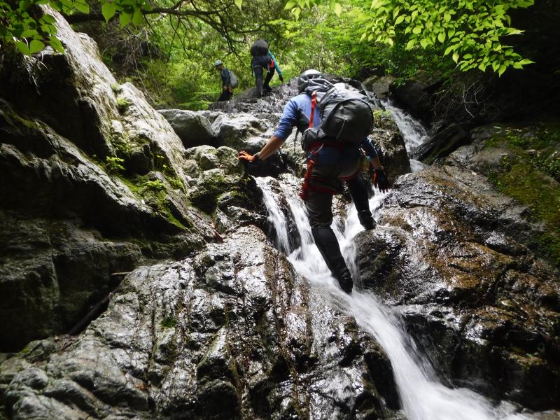 - ほとんどの滝に明瞭な巻き道があり、安心して沢登りを楽しめます。林道の橋までであれば脱渓も楽ですのでここで終了するパーティーも多いようです。ヒルには出会いませんでした。