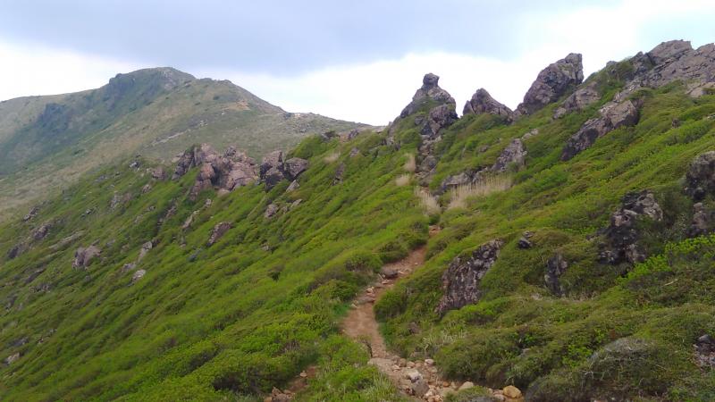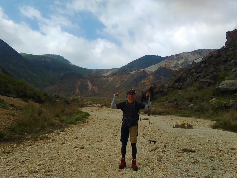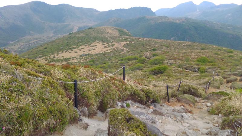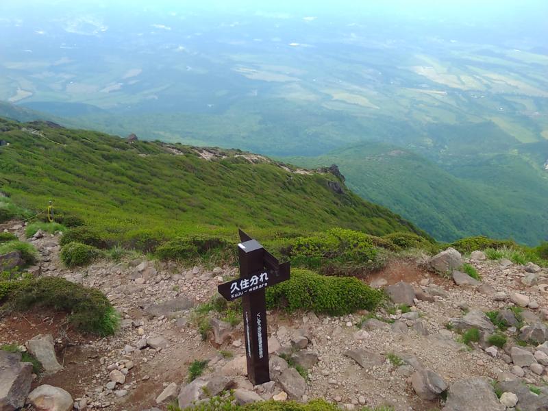- 長者原-60分-すがもり越え-30分-三俣山西峰-20分-スガモリ越え-50分-久住別れ分岐-20分-久住山-15分-久住別れ-45分-星生山-40分-扇ヶ鼻分岐-30分-扇ヶ鼻-60分-牧ノ戸峠-10分(自転車にて)-長者原