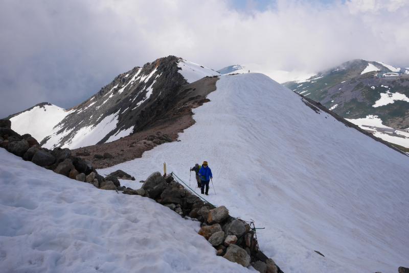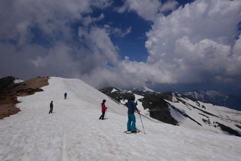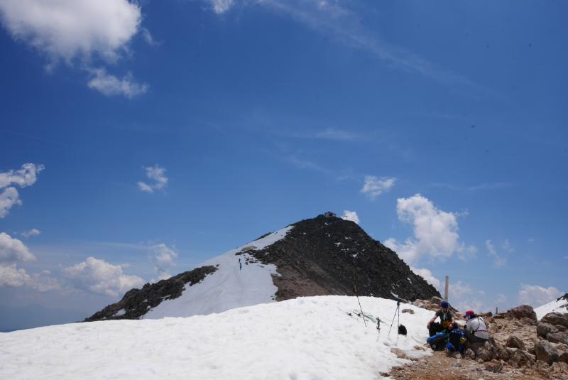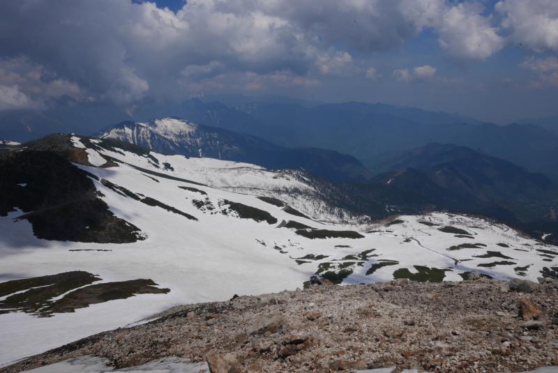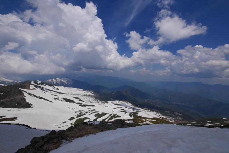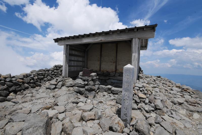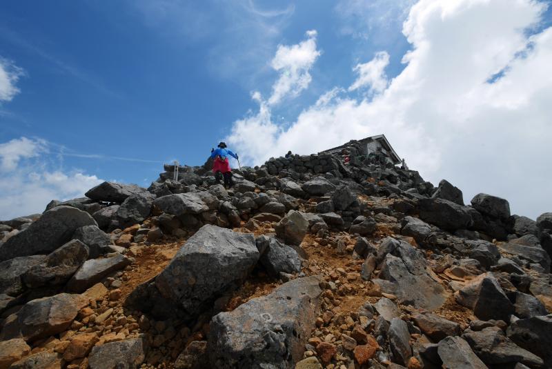 じりじり登りつめること2時間。肩ノ小屋付近に到着し荷物はデポして山頂へ向かいました。このあたりから黒い雨雲が向こうのほうからどんどん流れてくるのが見えて、帰りのバスと下山の時間が気になってやや焦りましたが、ぎりぎり雨に降られずに下山することができました。乗鞍高原温泉郷でバス停から宿まで歩いていると、遠くのほうで落雷の音が何度も激しく聞こえてきたのですこし遅かったら雨に当たっていたかもしれません。