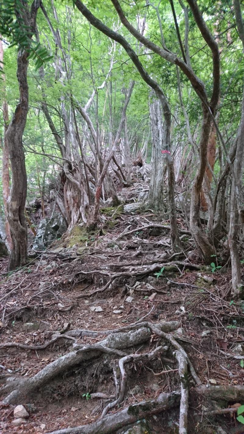 帰りはここから下山を開始しました。稜線を一気に下るルートで、なかなか膝に来ます。かなりの傾斜を下って行くので足元に気を付けて下さい。