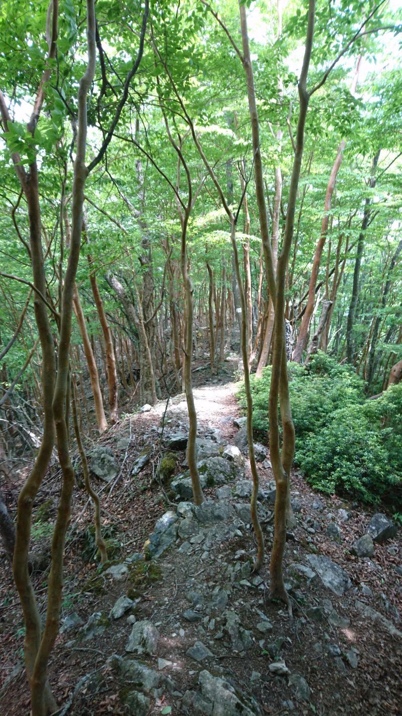 林道整備用かと思われるモノレールがあり、本来はそれをまいて下るのが正解のようですが、今回は道を見つけられずモノレール横を下りました。