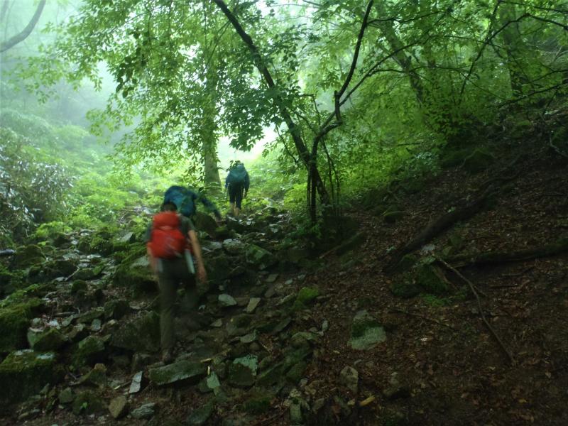 途中から大雨が降り出し、登山道はぬかるんで大変滑りやすく、