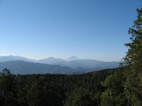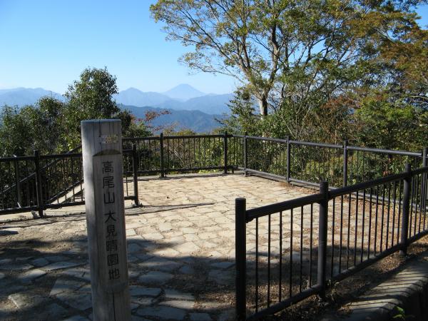 高尾山の頂上は景色が素晴らしく、丹沢や富士山の絶景が見られます。売店や休憩用のテーブルなどもたくさんあり、平日でしたが賑わっていました。