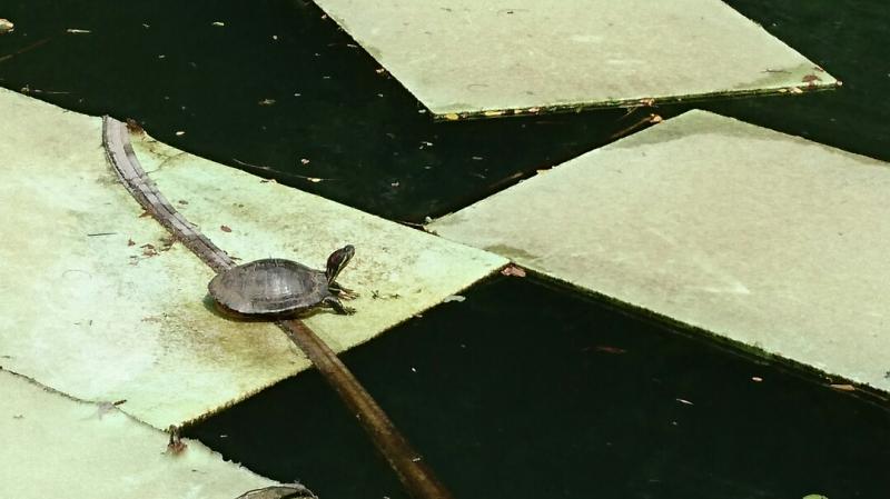 奥側の道は、水はけが悪く、水溜りに足を置かないと通れないところがあります。