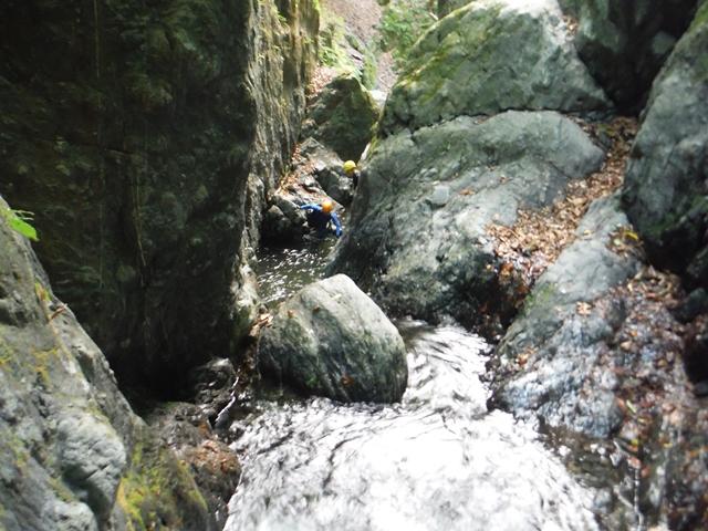 垂直の2m小滝がひとつあるので気を抜かないでください。