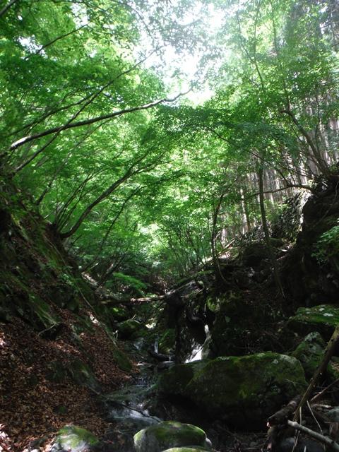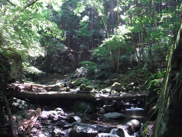 大堀沢はかなり狭く登山道の桟橋を潜ったら道に上がるのですが