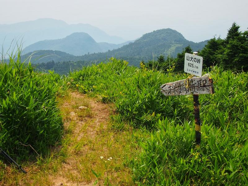 山犬の峠625mでアツい日差しに晒されつつも、先の見通しを見据えながら一旦体制を整え直します。ピークの名称で「~の辻」という呼称は九州地方独特と言われていますが(ちょっとカッコイイ)、ピークなのに「~の峠」と聞いた日にゃもう訳が分かりません。登山で言う「峠」はコルとほぼ同義です。余談ですが、コルについても九州は「越(こし)」より「越(ごえ・こえ)」と呼ぶ割合が多い気がします。