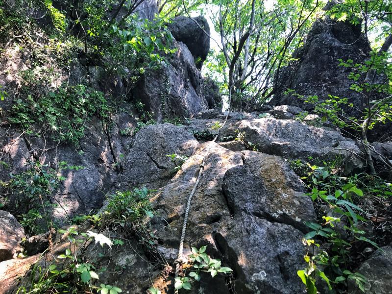 三ノ岳は手早く済ませたかったので直登の岩登りコースを選択しました。途中1か所のみ必要かどうか定かではないロープを張った所がありましたが、「ロープ張るならこっちでしょ!」と言わんばかりの手足を滑らせると大怪我では済まなそうな岩場もありつつ、コンパクトながら岩場登りを楽しめるコースです。