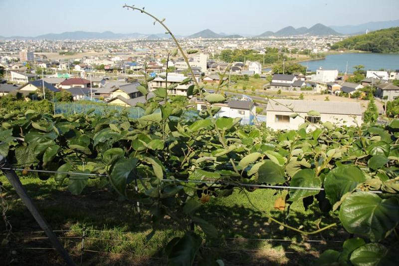 登山口には キウイ畑の キウイがおいしそう。いまから袋かけるんですとおっしゃってました。四国は 果物が豊富で、しかも安いです。