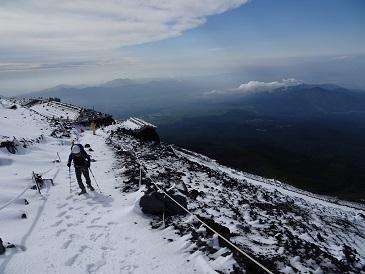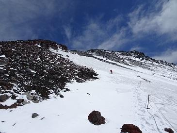 3000m付近から積雪も多くなり、アイゼンンは必携です