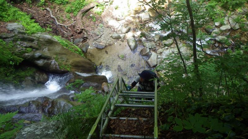 ・追分から弁財天の滝に至るベテラン(中尾根)コースと初心者コースに分かれます。ベテランコースは滑り易くトラバース、梯子、急登があります。登りに使うのがオススメです。