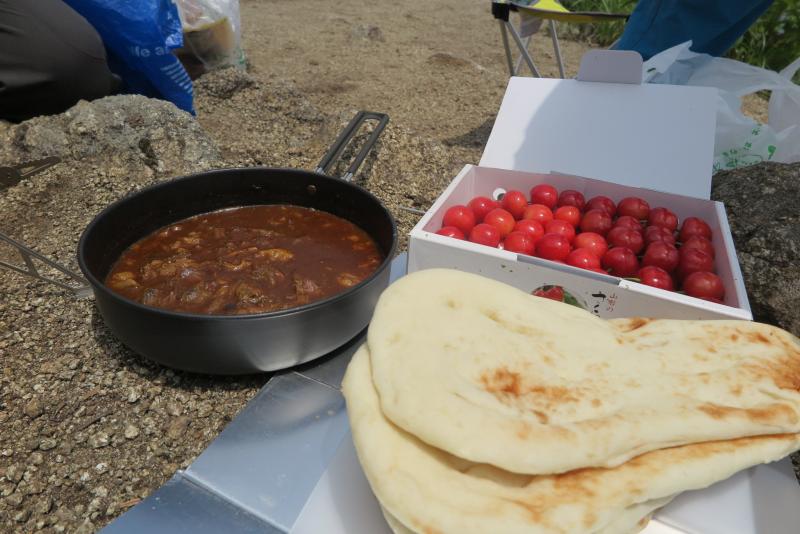 そしてお待ちかね、お昼ご飯。先輩方が腕によりをかけてごっつぉ(ご馳走)を作ってくれました。鉄砲ぶち(打ち)の知人がいるとのことで、何と猪肉を使ったカレーを頂きました。猪も熊と同じく牛肉のような食感、熊よりもいくらかさっぱりとしています。またしても山の恵みを山で味わうことができて至福の時間でした。