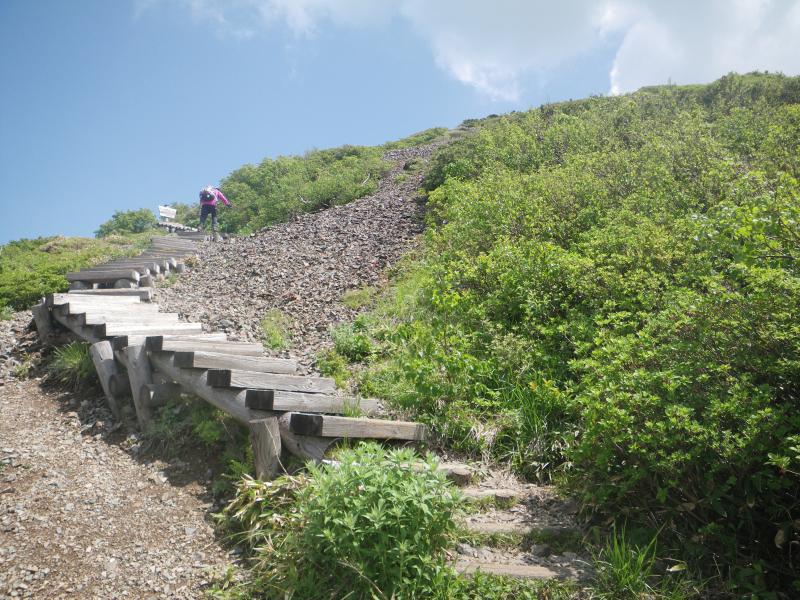 花の100名山の一つと言われる『平標山』へ出かけてきました。平日でしたがスタートした8時頃には駐車場は8割ほど埋まっており土日には相当の混雑が予想されます。樹林帯のスタートから松出山まで、そこから平標山頂までもさらに階段の急登が続きます。平標山頂から仙ノ倉まで往復2時間足を延ばしてお花畑を満喫するのも良いと思います。(この日はタイムオーバーで途中までしか下りられませんでした)下山も林道まで整備された階段または階段状の長い下りが続きます。林道に下りてからも最後まで気を抜かず歩いてください。