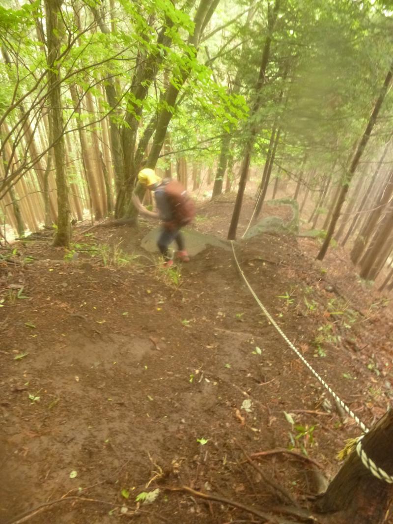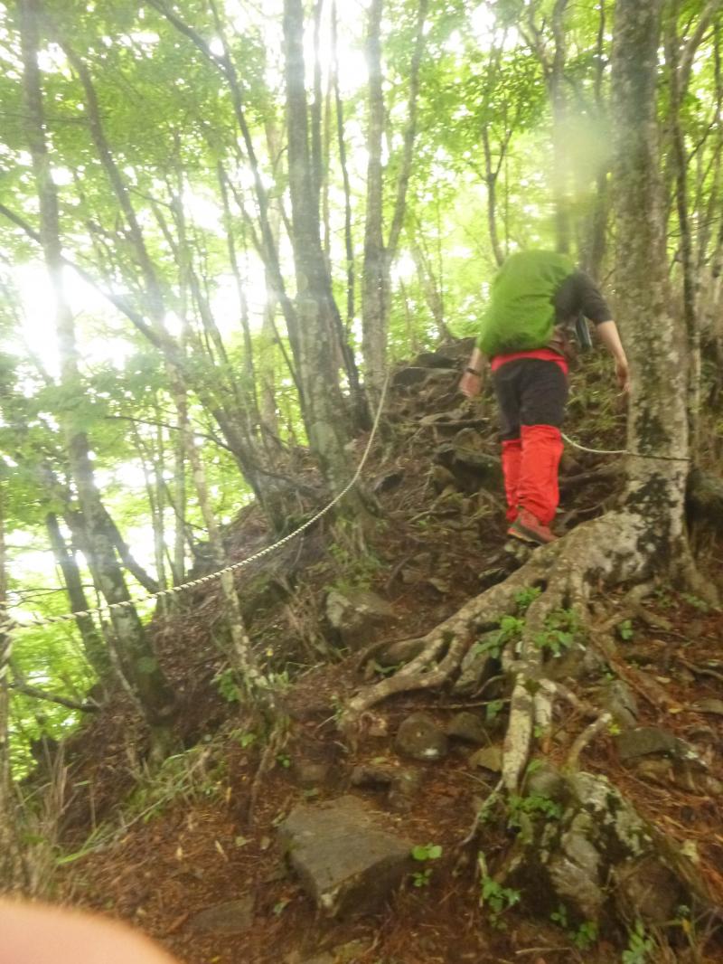 - ○登山道は歩きやすい道が続きます。ただし、後半は驚くほどの急登で、上りはまだよくても下りは怖いなと思うほどです。特に急斜面にはトラロープが設置されていますので、それを使ってなんとか下りてきました。