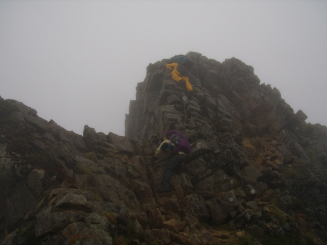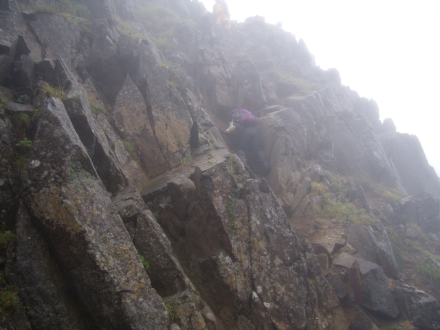 危険な場所が連続する。また所々、鎖が設置されるも浮石が多く細心の注意を要する。