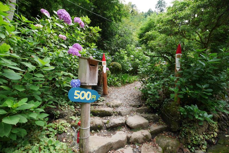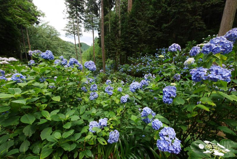 南沢あじさい山とは、南沢さんという方が私有地に個人であじさいを育てて管理している場所で、ちいさな裏山といった雰囲気のところです。新聞によると、お墓までの道をあじさいで彩りたいと思ったのがはじまりで、いまでは1万株ものあじさいが咲く武蔵五日市の観光スポットとなっています。南山さんの高齢化に伴って、ここ1~2年は地元の若者たちがクラウドファンディングで集めた資金を使いながら管理しているようで、以前はなかったパンフレットや夜間ライトなども設置され、イベント的なものも行っているようでした。混んでいるかなと心配していましたがこの日は天気予報が(いつものように)最悪で、わざわざ訪れる人は多くはなかったようです。でも17時までは天気がもってくれたので行って正解でした。