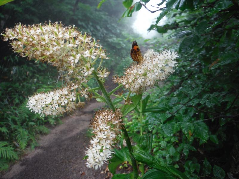 雨のおかげで蒸し蒸しした森の中が僅かに涼しくなり、体の調子も戻ってきました。進めば進むほど花の種類も増えていき、夢中になっていつの間にか山頂までやって来たのでした。こんな天気なので今日は飯豊のパノラマはおあずけ。それでも日焼けもあまりせず、何よりお花がたくさん見れたので頑張って登った甲斐がありました。