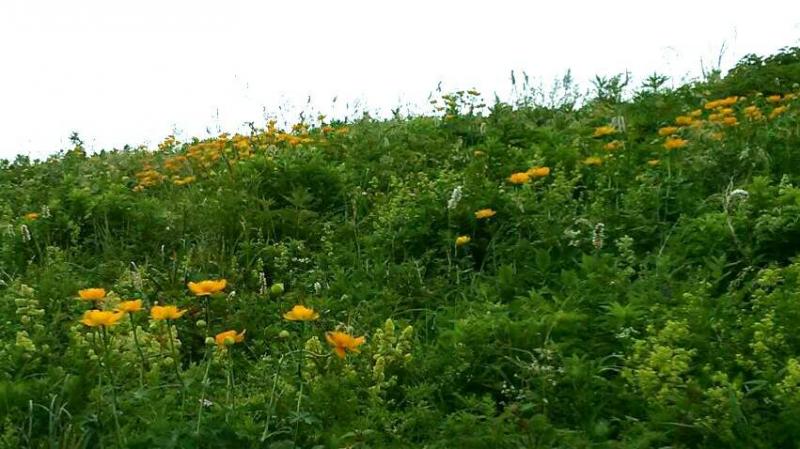 山頂は キンバイソウが満開。 シシウドなどはぐっとへっておりました。