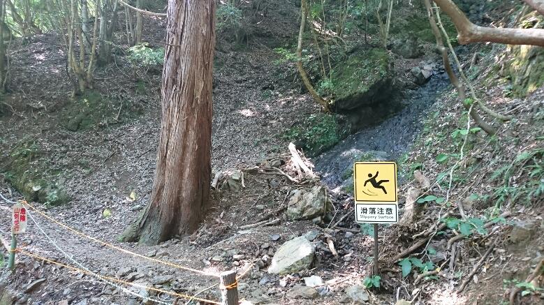 滝の近くまで行けますが、足元が滑りやすくなっていますので、ソールのしっかりしたシューズをお勧めします。