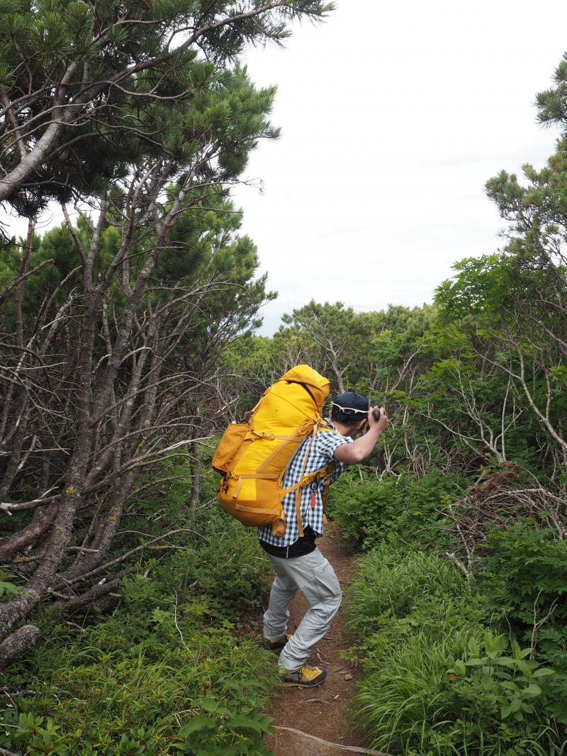 五色岳で最後の休憩を取り、後は背丈以上のハイマツ帯の中を熊鈴を必要以上に鳴らしながら歩きました。